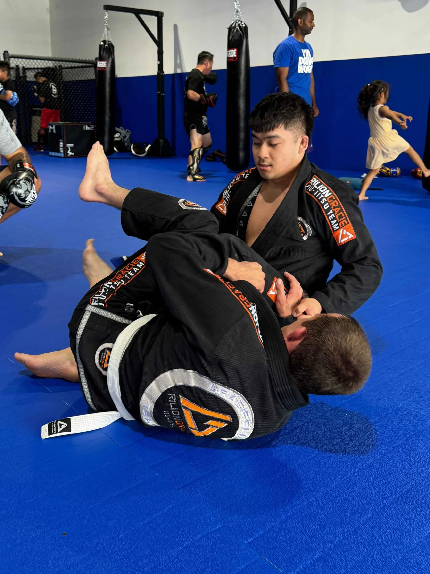 Brazilian Jiu Jitsu (BJJ) is a martial art based on grappling, ground fighting, and submissions. There is no punching or kicking in BJJ. Students must focus on utilizing their other tools while on the ground. (grips, leverages, body positioning, joint locks, chokes, etc) Within our curriculum you will also train techniques from other grappling sports such as Wrestling and Judo. BJJ is an incredible martial art for combat sports and even better for self defense. Brazilian Jiu Jitsu is open to kids and adults!